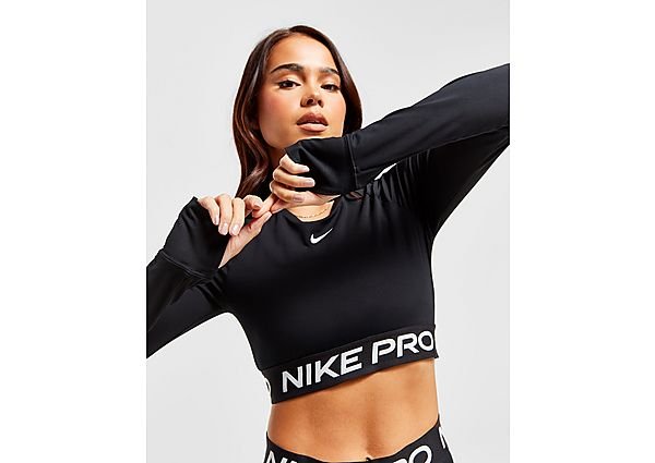 _Werk je in het zweet in deze korte Nike Pro top. Het gladde materiaal is licht en elastisch en droogt snel, zodat je er klaar voor bent als je work-out intensiever wordt. Met een aansluitende pasvorm en een zachte elastische band van jacquardmateriaal bij de zoom voel je je zelfverzekerd terwijl je je doelen verplettert._Net als een ProZelfverzekerde stijl past overal bij. Van leggings tot tops tot meer, Nike Pro is klaar om je garderobe aan te vullen met items waarmee je opvalt._Blijf droogNike Dri-FIT technologie voert zweet weg van de huid voor snellere verdamping, zodat je droog en comfortabel blijft._Perfecte bedekkingDe duimgaten bieden extra bedekking en houden de mouwen op hun plaats wanneer je beweegt._Productgegevens83% polyester/17% elastaanKan in de wasmachineGeïmporteerd. Material: 83% Polyester; 17% Elastaan