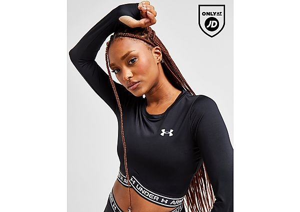 Geef je workout een boost in deze Crossover Long Sleeve Crop Top van Under Armour. Deze exclusieve JD-sporttop in de kleur zwart is gemaakt van glad, lichtgewicht polyester voor langdurig comfort. Het valt slank, heeft een klassieke ronde halslijn en gestroomlijnde lange mouwen voor een strakke look. Het heeft een kortere zoom met contrasterende witte strepen en een gekruiste afwerking aan de voorkant, en is afgetekend met het Under Armour-merk rond de zoom en op de borst. Mag in de wasmachine. | Ons model is 1,80 meter en draagt maat small.. Material: 100% Polyester